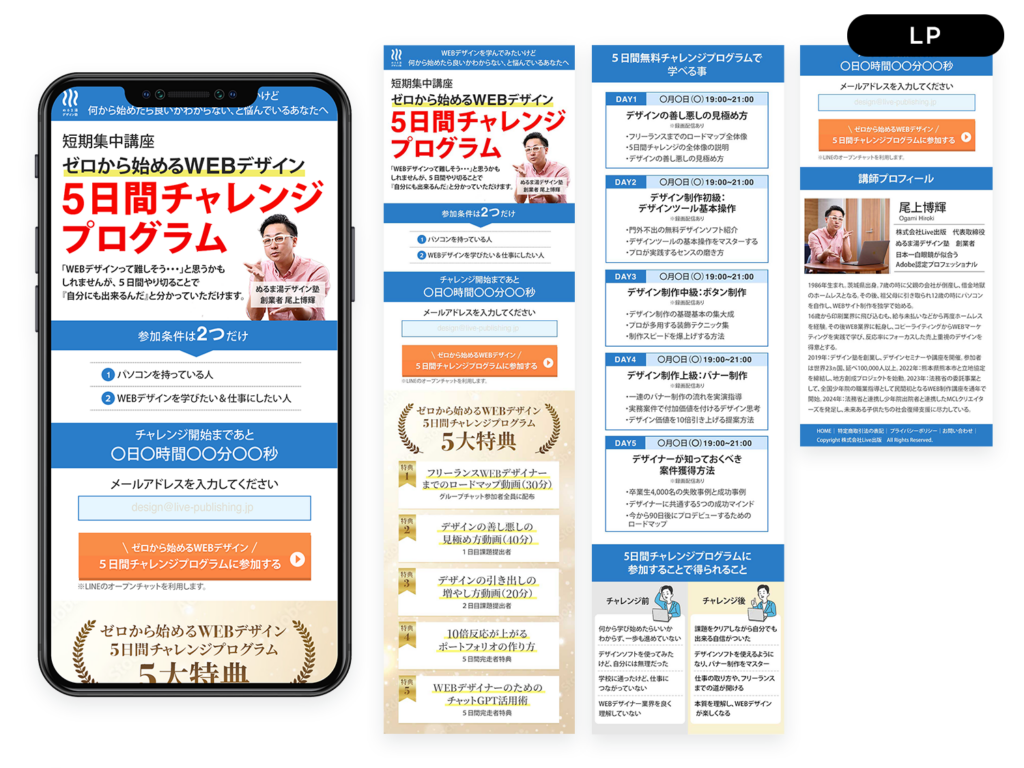 お問合せや購入などの目的・ターゲットに合わせたLPの制作ができます。