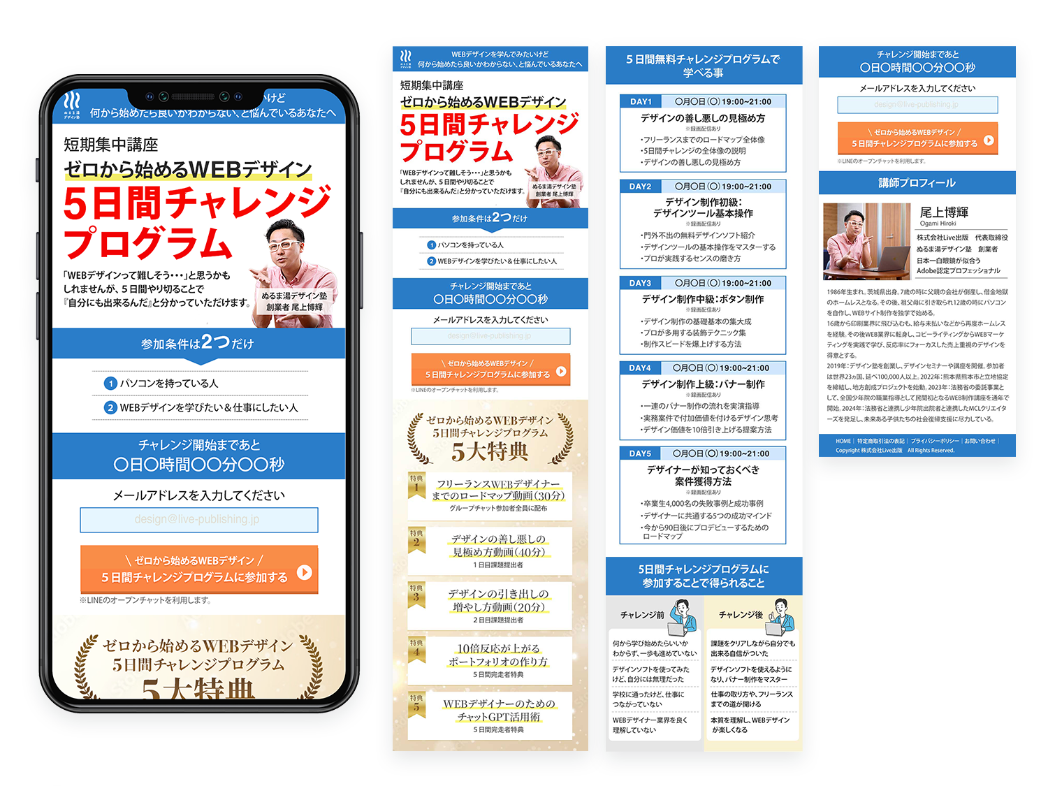 スクール課題であるWebデザイン5日間チャレンジのLPを制作しました。